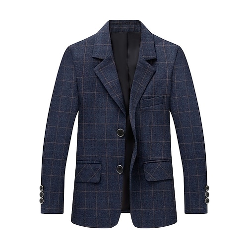 Bambini Ragazzi Blazer Capispalla Plaid Manica Lunga Tasca Bottoni Cappotto Feste Moda Streetwear Cool Blu Nero Grigio Primavera Autunno 4-12 Anni