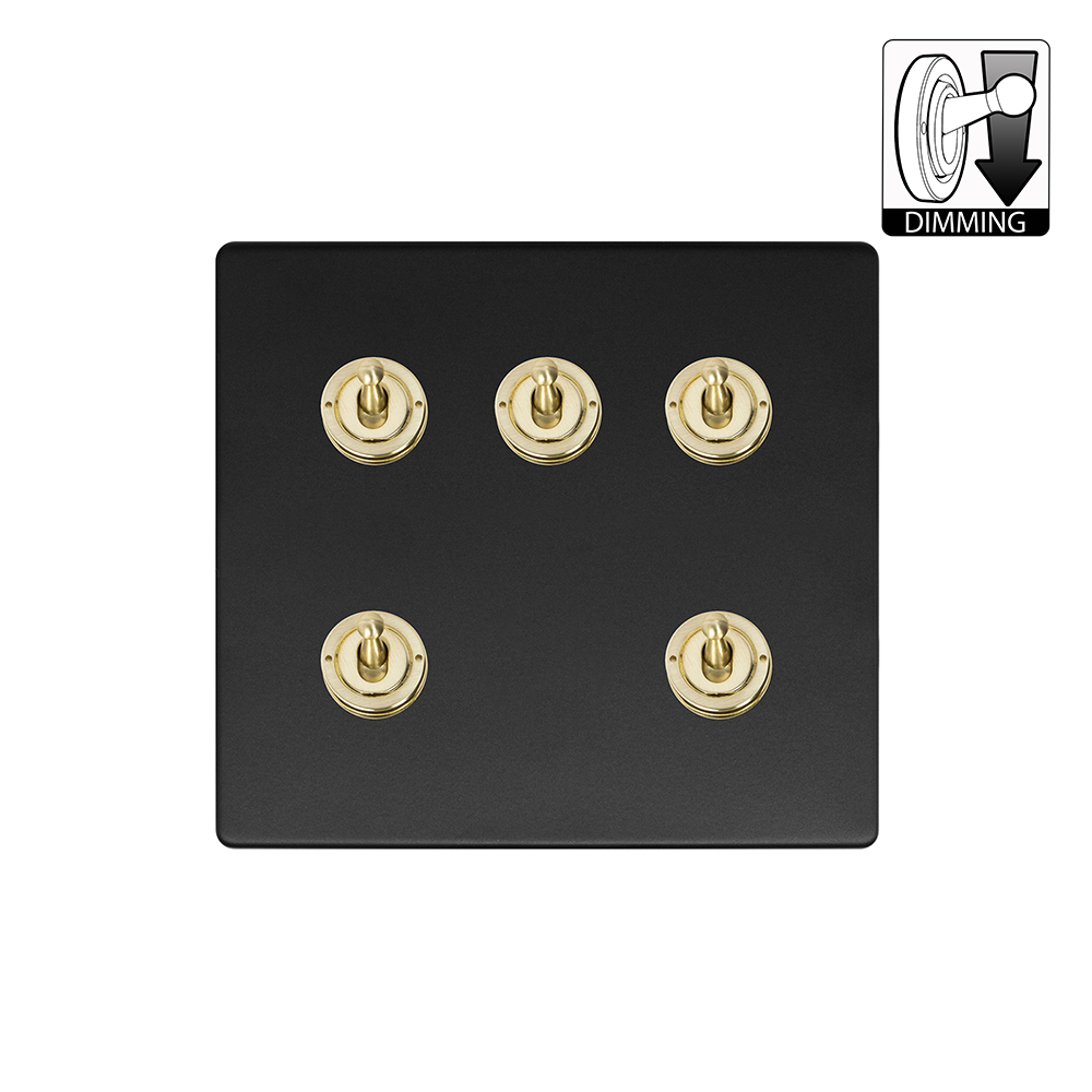 Soho Lighting Lighting Matt Black & Brushed Brass 5 Gang Dimming Toggle Switch