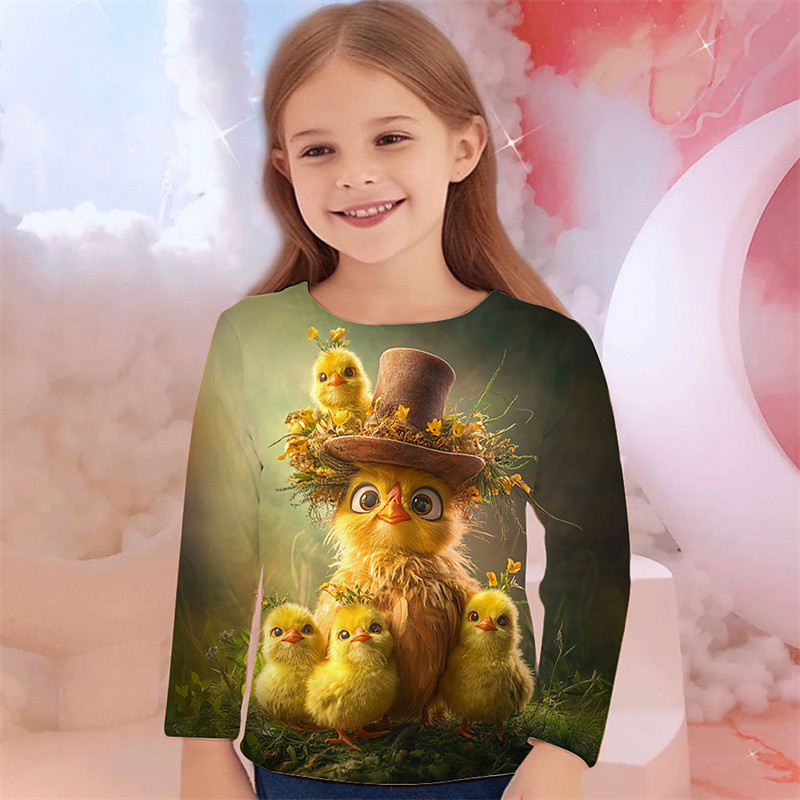 Girls' 3D Graphic Animal T shirt Tee Long Sleeve Spring Fall Fashion Basic Kids 4-12 Years Crew Neck Outdoor Casual Daily Regular Fit
