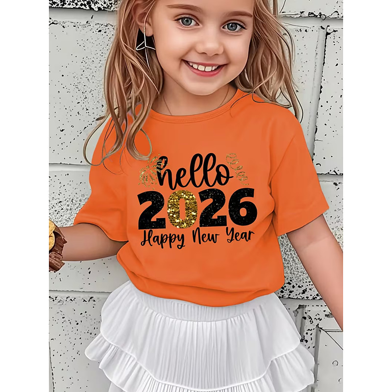 Girls' 2026 New Year'S Party 3D Graphic Letter T shirt Tee Short Sleeve 3D Print Summer Spring Sports Fashion Streetwear Kids 4-12 Years Crew Neck Outdoor Casual Daily Regular Fit