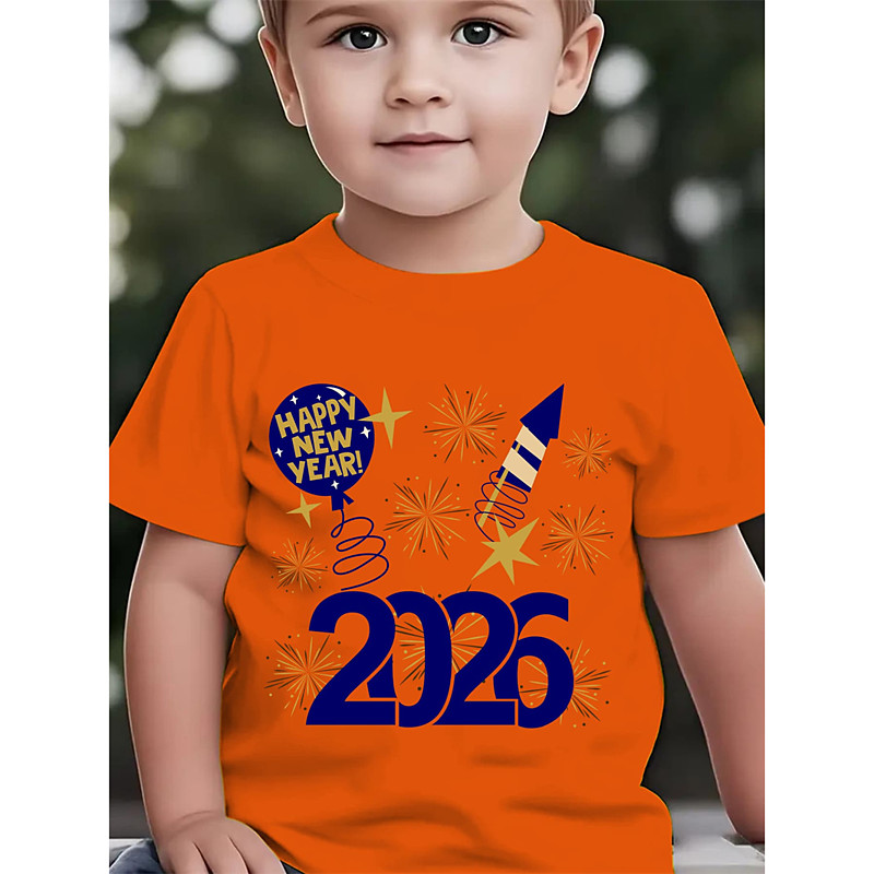 Boys' 3D 2026 New Year'S Party Graphic Letter T shirt Tee Short Sleeve 3D Print Summer Spring Sports Fashion Streetwear Kids 4-12 Years Crew Neck Outdoor Casual Daily Regular Fit