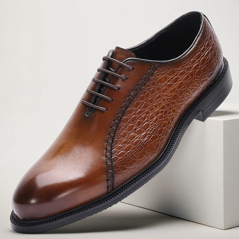 Men's Brown Leather Oxford Dress Shoes – Classic Lace-Up Formal Business Shoes for Office, Wedding and Evening Events