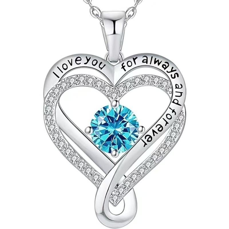 Personalized Birthstone Heart Necklace for Her Genuine 925 Sterling Silver Jewelry Gift for Women, Anniversary, Birthday, Valentines Day