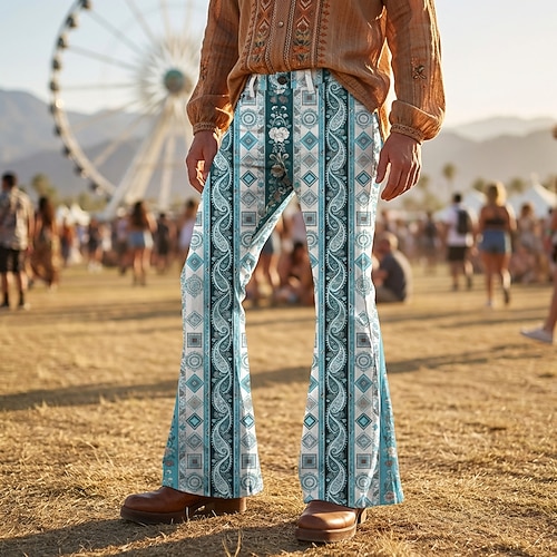 Retrò Vintage Boho Anni '70 Pantaloni Pantaloni a gamba larga Hippie Disco Vita alta Etnico Costume Per uomo Halloween Carnevale Festival Musicale Festa a tema retrò Adulti Pantaloni