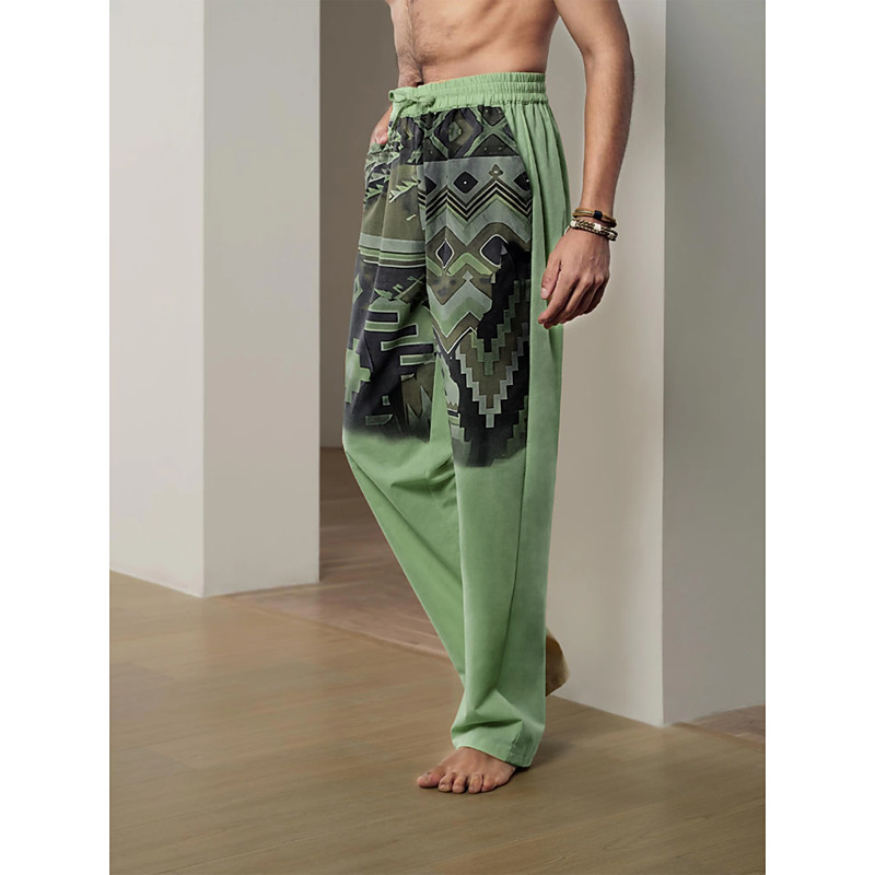 Men's Geometic Ethnic Linen Pants Beach Pants Mid Waist Streetwear Hawaiian Designer Casual Daily Holiday Drawstring Elastic Waist 3D Print Spring Summer 3D Print Yellow Blue Green