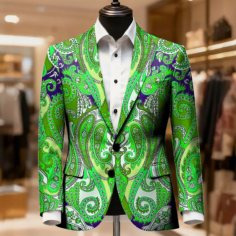 Men's Paisley Blazer Jacket Coat Comfortable Breathable Artistic Casual Casual Daily Festival 3D Print Buttons Fall Winter Notch Long Sleeve Blue Red Green