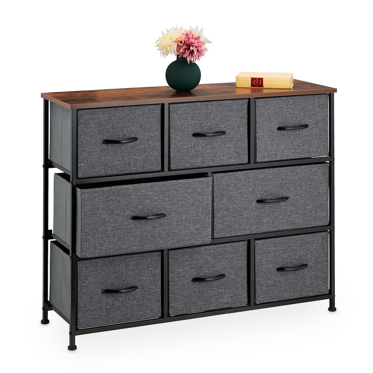 Relaxdays Kommode Industrial, HBT: 78,5 x 100 x 30 cm, 8 Schubladen, Stoff & Metall, Holzoptik, Sideboard, grau/braun