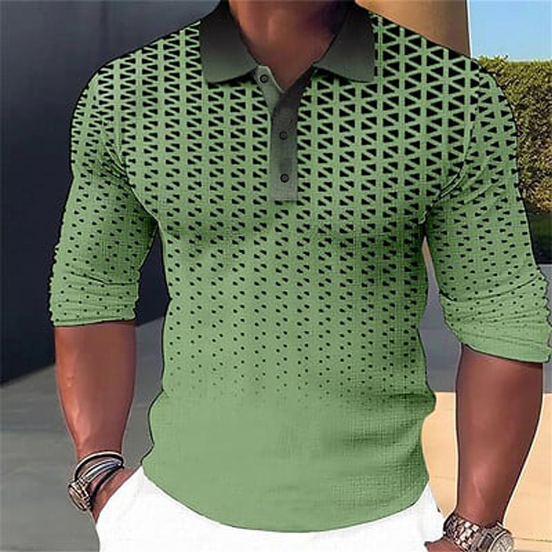 Men's Abstract Geometic Polo Long Sleeve Polo Shirts Lapel Casual Outdoor Street Athleisure Daily Wear 3D Print Buttons Spring Fall Winter Black White Light Green