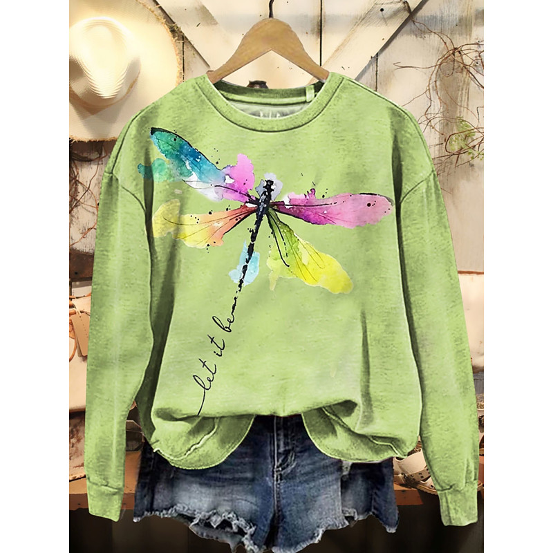 Women's Shirt Dragonfly Daily Casual 3/4 Length Sleeve Crew Neck Regular Tops Daily Holiday Print Yellow Blue Purple Green Summer Spring Fall