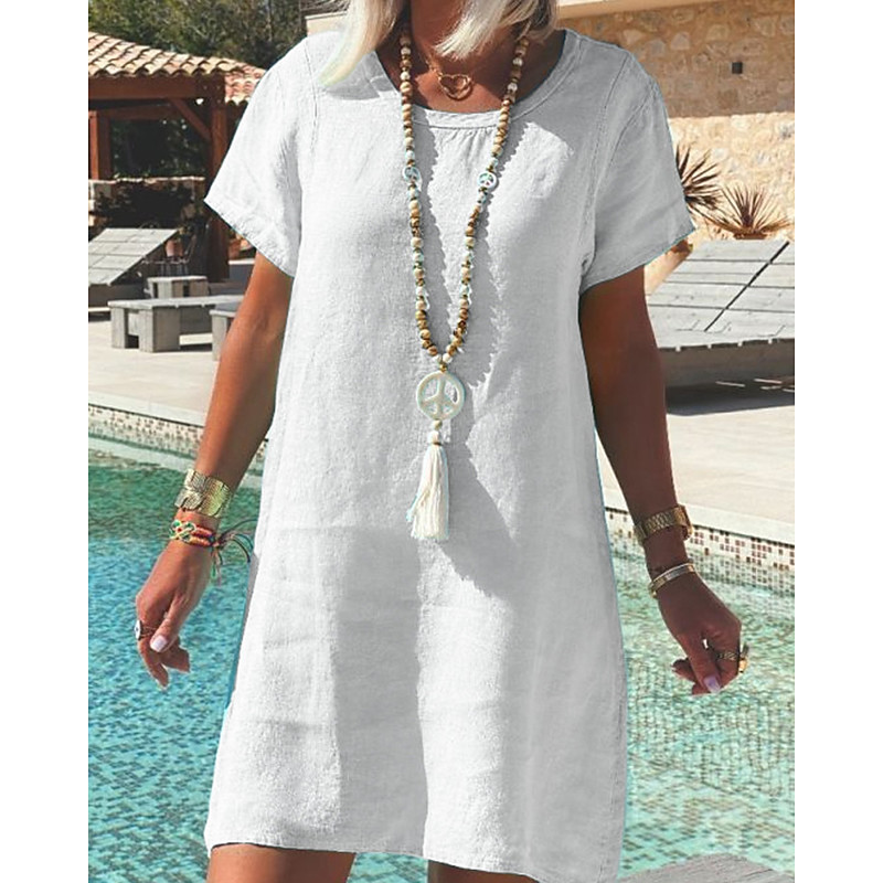 Women's Mini Dress Casual Dress Shift Dress Classic Modern Outdoor Vacation Holiday Regular Fit Plain Short Sleeve Crew Neck White Yellow Pink Purple Fall