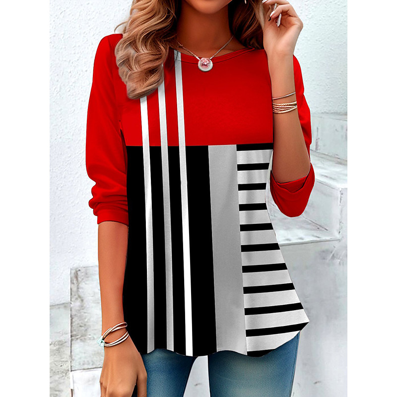Women's T Shirt Graphic Geometric Color Block Vintage Stylish Classic Long Sleeve Crew Neck Round Neck Regular Tops Daily Print Black Spring Fall Winter