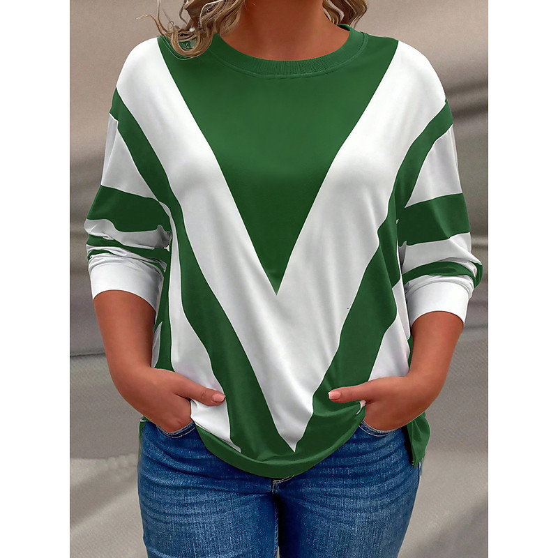 Women's Plus Size Tops Pullover Sweatshirt Color Block Print Long Sleeve Crew Neck Casual Daily Polyester Fall Winter Black Brown