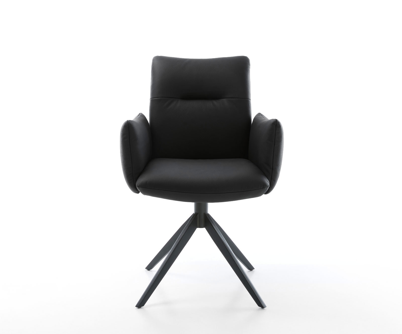 DELIFE Draaistoel Jova-Flex met armleuning echt leer zwart kruisframe breed zwart 360° draaibaar rocker-functie pocketveer kern