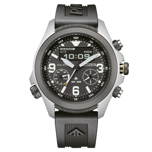 Citizien Promaster Land Eco- Drive JV1007-07E | Herrklocka med Svart urtavla | 43 mm | Eco-Drive | Gummi | Armbandsur
