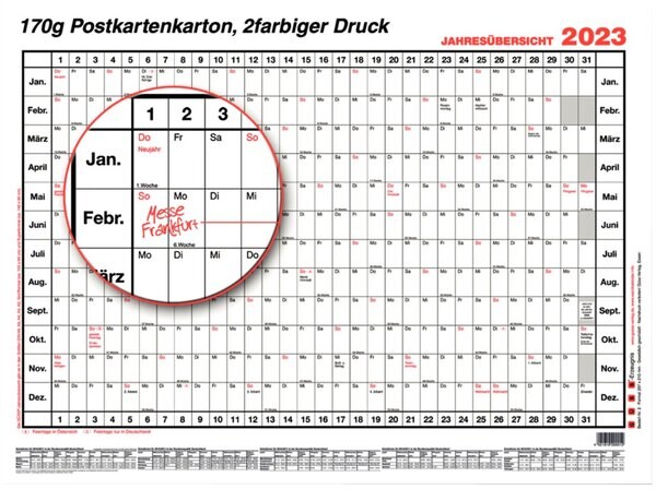 GÜSS Jahresübersicht DIN A3, Tagesfeld : 1,1 x 1,6 cm, Maße: 42 x 30 cm
