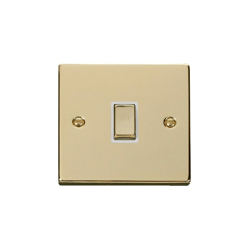Click Deco 20A 1 Gang Double Pole 'Ingot' Switch Polished Brass Insert White