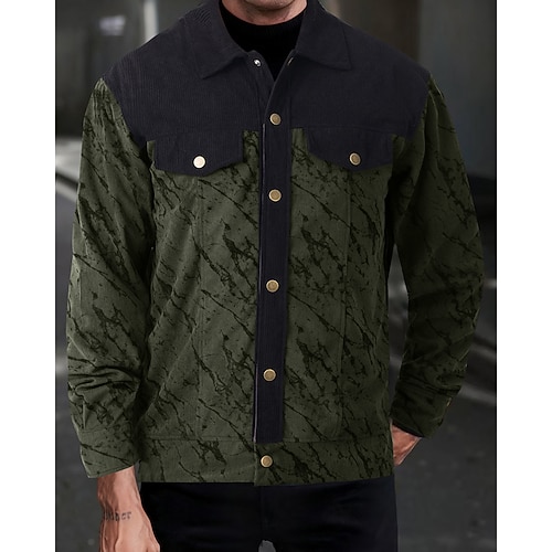 Herren Leichte Jacke Cordjacke Freizeitjacke Urlaub Täglich Warm Tasche Frühling Herbst Farbblock Mode Klassisch Revers Regulär Khaki Armeegrün Dunkelgray Jacken