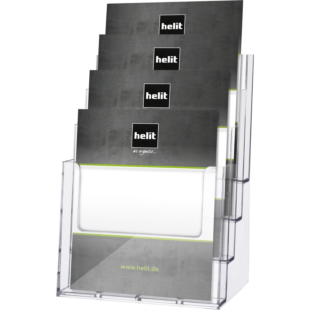 helit Prospekthalter H2352402 DIN A4 4Fächer PS glasklar