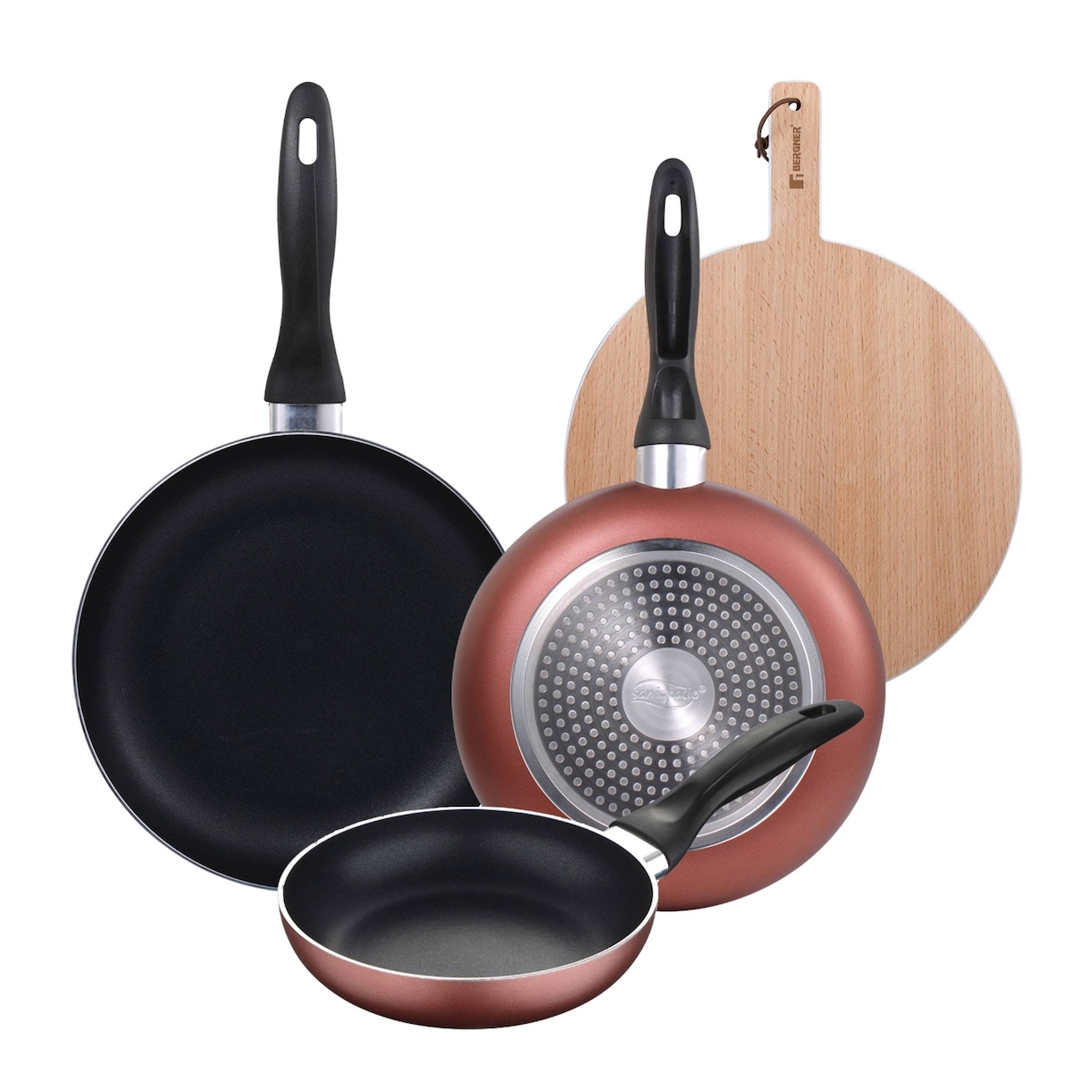 BERGNER - Set aus 2 Pfannen Ø22/26 cm gepresstes Aluminium mit abnehmbarem Griff mit Set aus 3 Edelstahlmessern mit Tacoma