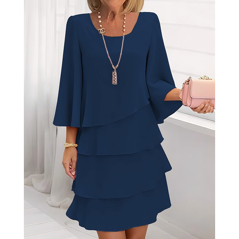 Women's Mini Dress Chiffon Dress Tiered Dress Fashion Modern Outdoor Vacation Going out Regular Fit Plain 3/4 Length Sleeve Crew Neck Pink Red Navy Blue Khaki Spring Fall