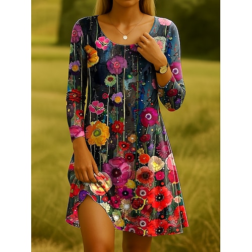 Per donna Abito Midi Vestito T-Shirt Vestito Estivo Abito a trapezio Casual Quotidiano Ferie Data Vestibilità regolare Floreale Grafico Manica Lunga Girocollo Blu Nero Bianco Verde scuro Estate