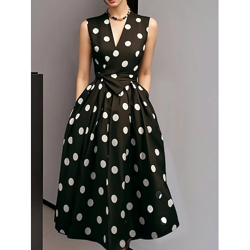 Per donna Abito Midi Vestito Casual Abito da lavoro Abito a pois Elegante Moda Moderno All'aperto Vacanza Uscire Vestibilità regolare Puois Senza Maniche Scollo a V Nero Bianco Estate Primavera