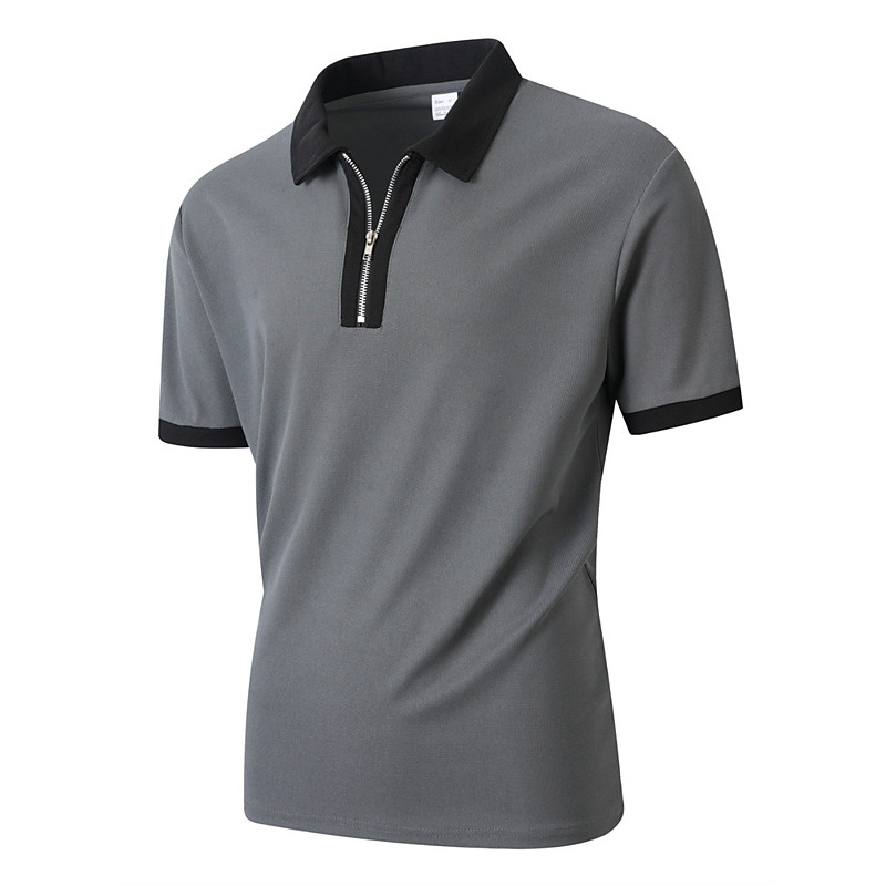 Men's Quarter Zip Polo Golf Shirt Work Casual Quarter Zip Short Sleeve Basic Modern Plain Zipper Summer Regular Fit Black White Pink Navy Blue Sky Blue Khaki Quarter Zip Polo
