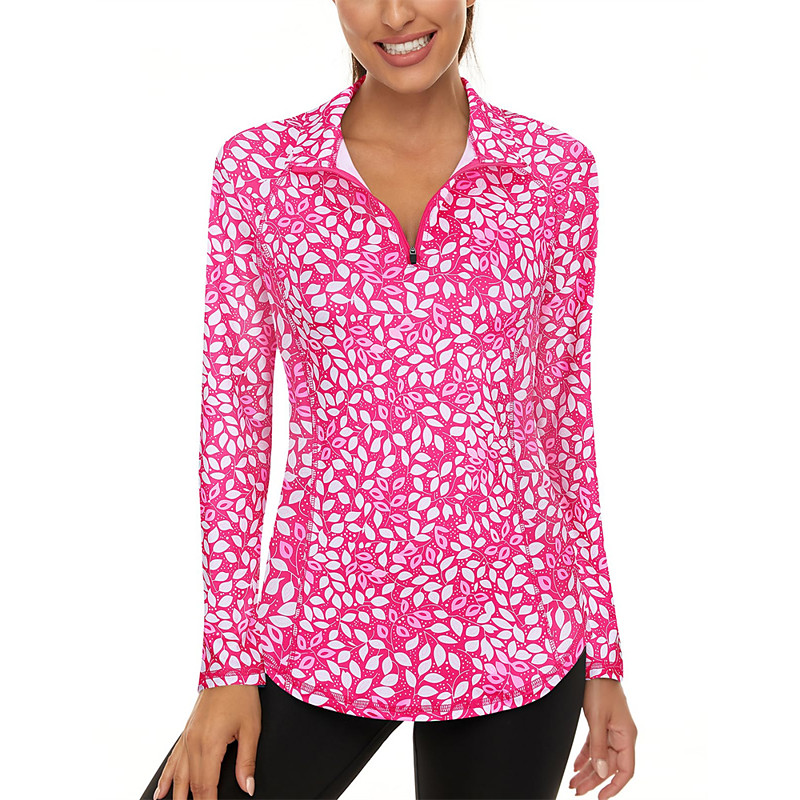 Women's Floral Golf Polo Shirt Tennis Shirt Long Sleeve Print Quarter Zip Pullover UV Protection Elastic Breathable Tennis Golf Pickleball Zip Collar Shirt Polo Pink Blue Gray Tennis Clothing