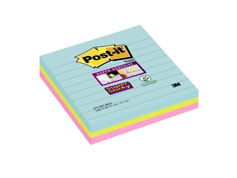 3M Post-it Super Sticky 675-3SSMIA Dekorativer Aufkleber Papier Blau - Pink - Gelb Entfernbar 3 Stück(e) (675-S3M)