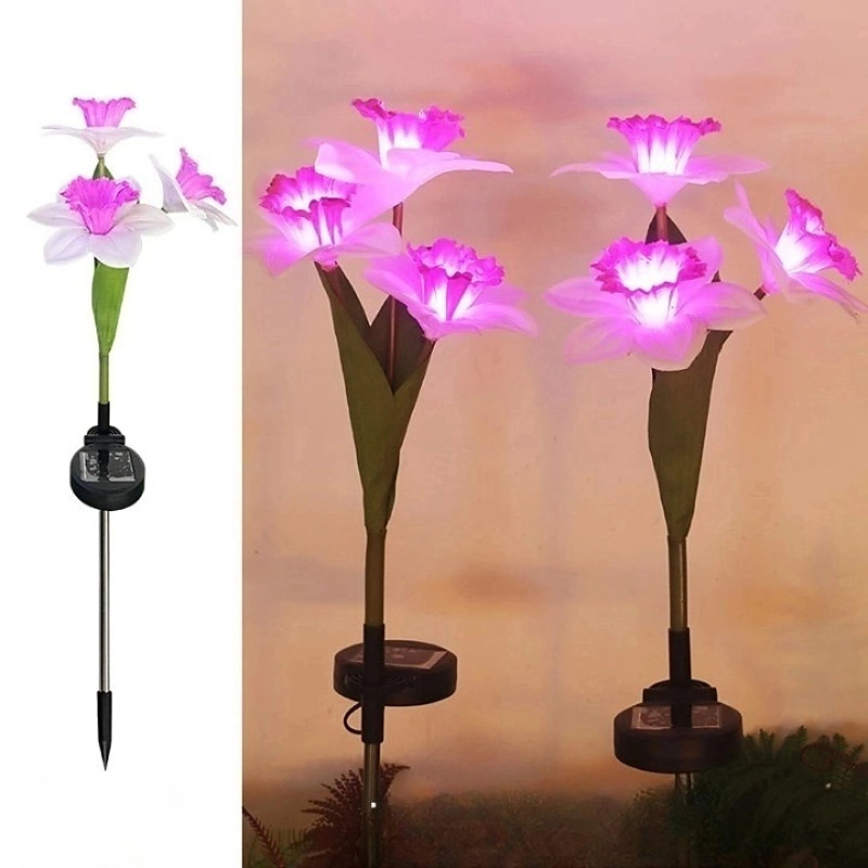 Solar Lights, 3-Head-Daffodil Flower Solar Lights, Landscape Lights, LED Outdoor Solar Powered Garden Lights, Waterproof Flower Lights, Landscape Stake Light for Yard, Pathway, Patio Decor