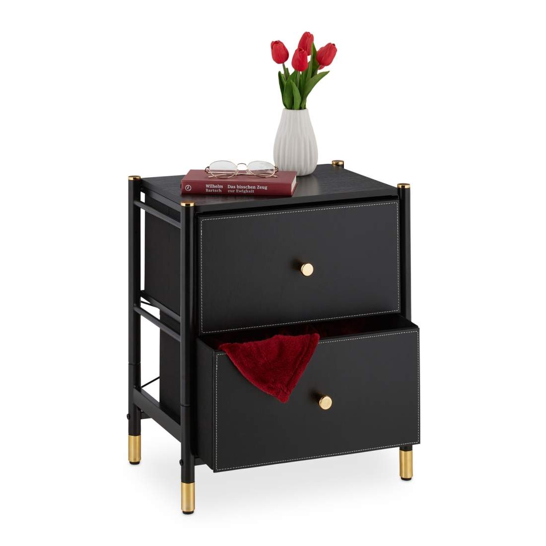Svart sideskap med 2 Skinn-Look Skuffer