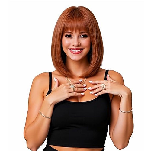 Synthetische Perücken Stirn-Pony Locken Freier Teil Perücke Kurz Braun / Burgund Synthetische Haare 12 Zoll Damen Damen Synthetik Für Damen dunkler Hautfarbe Dunkelbraun