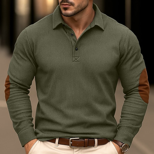 Per uomo Camicia di Velluto a Coste Testurizzato Casuale Sportivo Bavero Manica Lunga Moda Essenziale Blocco di colori Semplice Patchwork Bottoni Primavera Autunno Autunno Inverno Vestibilit