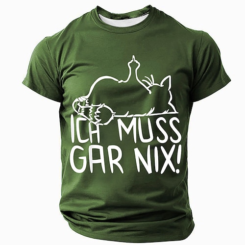 Men's Funny Graphic T-Shirt with Defiant Cat Ich Muss Gar Nix! German Slogan - Lifestyle Short Sleeve Tee