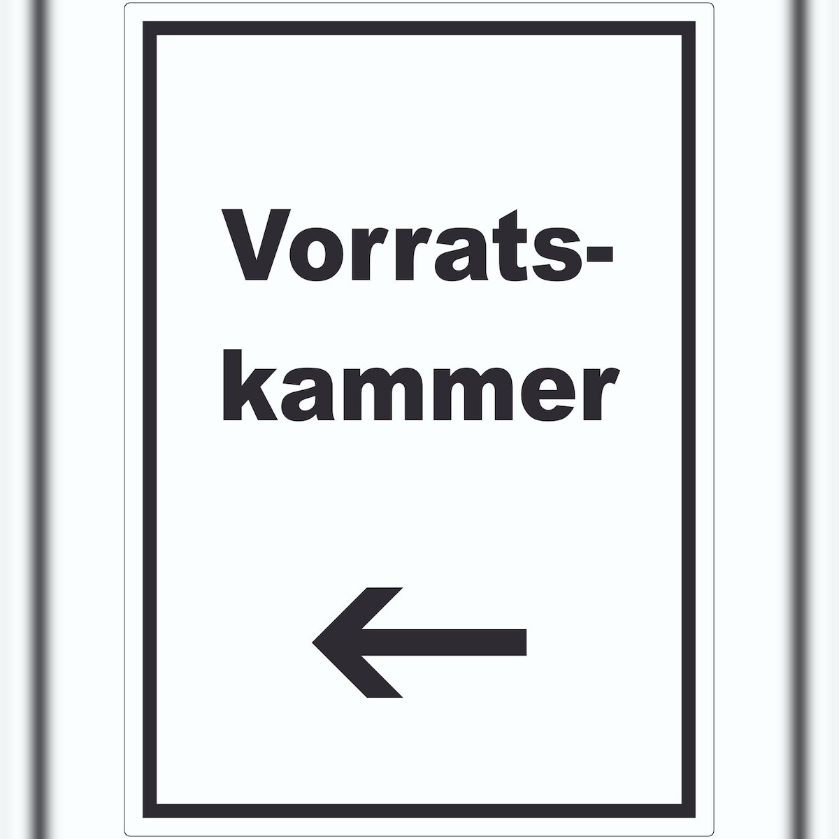 HB-Druck Vorratskammer Aufkleber mit Text und Richtungspfeil links Pantry Reserve hochkant A2 (420x594mm)