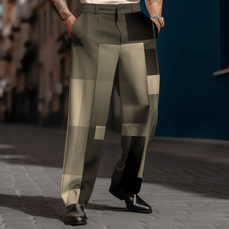 Faith Vintage Business Men's 3D Print Pants Trousers Outdoor Street Wear to work Polyester Black White Green S M L High Elasticity Pants