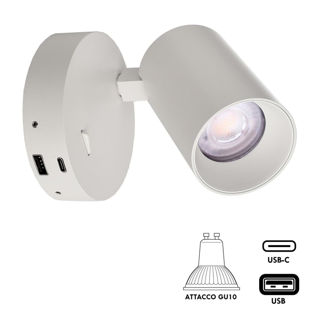 Applique muro GU10 orientabile usb per ricaricare metal BIANCO 11cm