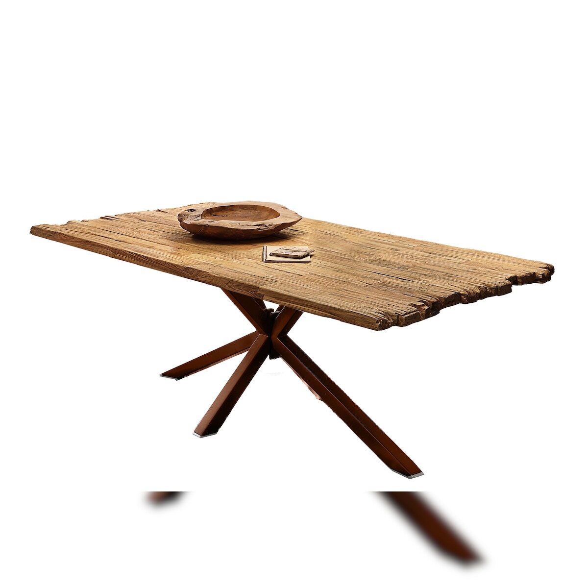 SIT Möbel Esstisch 200 x 100 cm, Platte recyceltes Teak natur, Gestell Metall antikschwarz, B 200 x T 100 x H 75 cm, 15502-11, Serie TABLES & CO