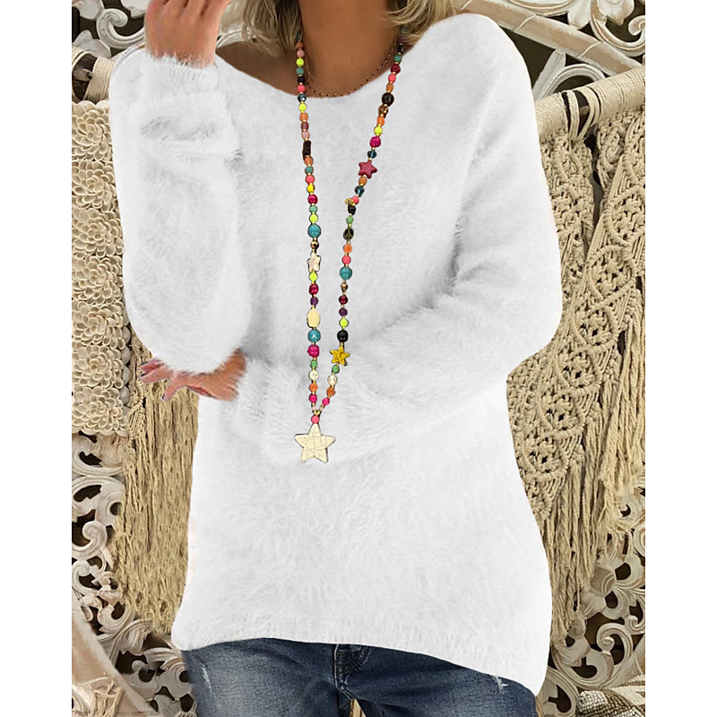 Women's Sweater Pullover Streetwear Casual Solid Color Crew Neck Knitted Long Sleeve Regular Tops Knit Holiday Going out Weekend Black Wine Fall Winter