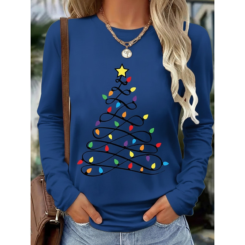 Christmas Women's T Shirt Graphic Vintage Fashion Stylish Long Sleeve Crew Neck Round Neck Regular Tops Daily Weekend Print White Red Fall Winter