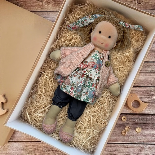 Bambola Waldorf fatta a mano per bambina con set di vestiti - bambola di peluche morbida da 11,8 pollici per bambini piccoli, regalo di Natale ideale per bambini