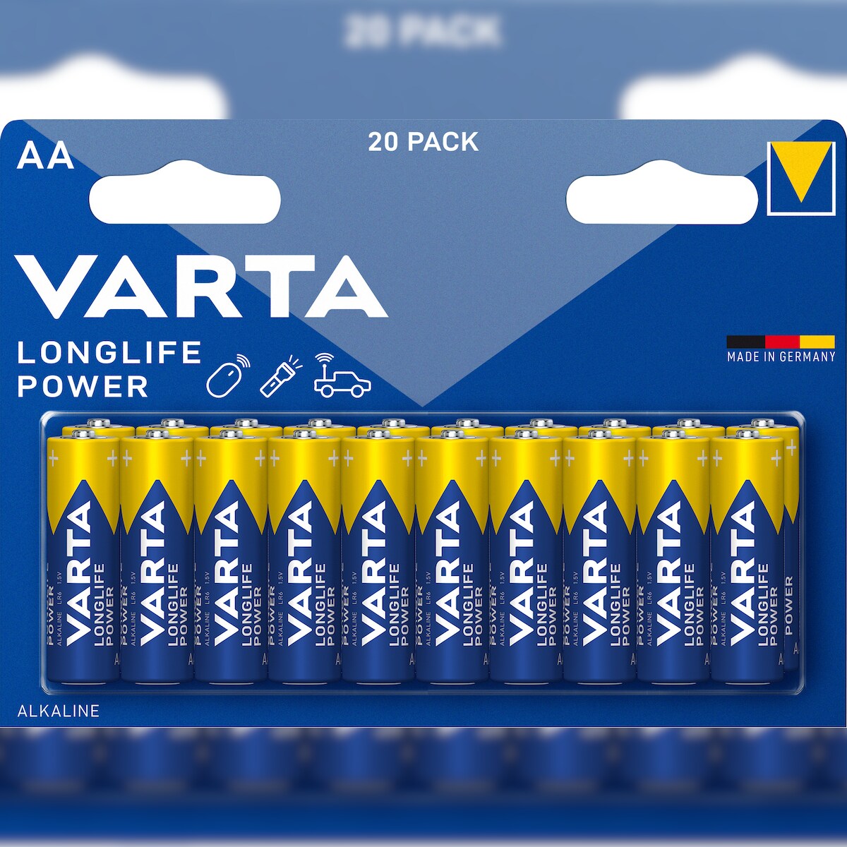Varta Batterie Alkaline, Mignon, AA, LR06, 1.5V Longlife Power, Retail Blister (20-Pack)