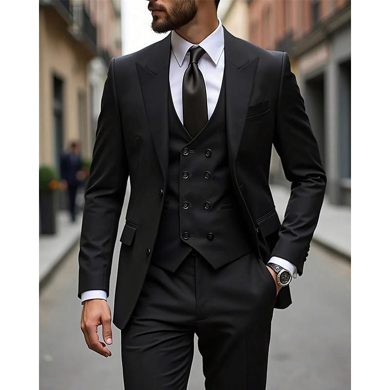 Men's BlazerVestDress Pants Blazer Suits Business Cocktail Party Wedding Party 3 Piece Fashion Casual Spring Fall Polyester Plain Pocket Buttons Comfortable Double Breasted Blazer Blue Dark Gray