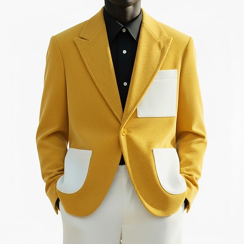 Per uomo Giacca in Velluto a Coste Giacca blazer Collare di chiusura Moda Classico Casual Patchwork Tinta unita Blazer Giallo Borgogna Marrone Vestibilità su misura Monopetto Un Bottone