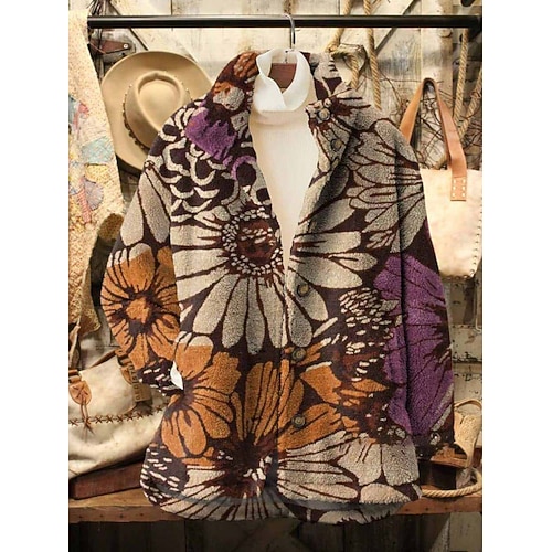 Per donna Giacca in Pile Giacca Casual Confortevole Traspirante Tasca Stampato Casual Floreale Vacanza Streetwear Casuale Abbigliamento quotidiano Cerniera Regolare Collo ripiegato Vestibilità comoda
