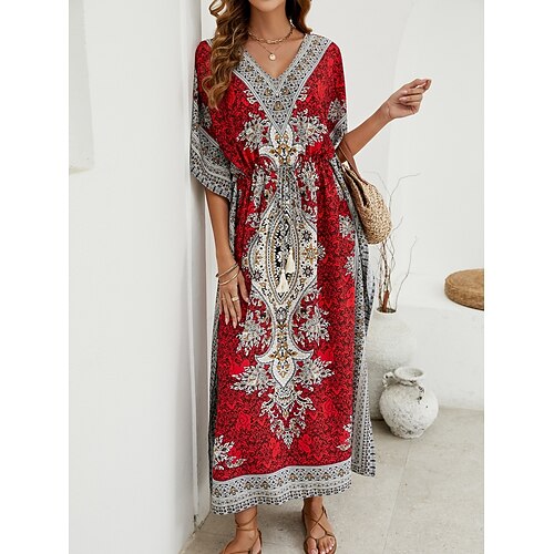 Per donna Abito maxi Abito a Tubino Casual All'aperto Uscire Vestibilità comoda Floreale Manica 3/4 Scollo a V Blu Rosso Estate Primavera