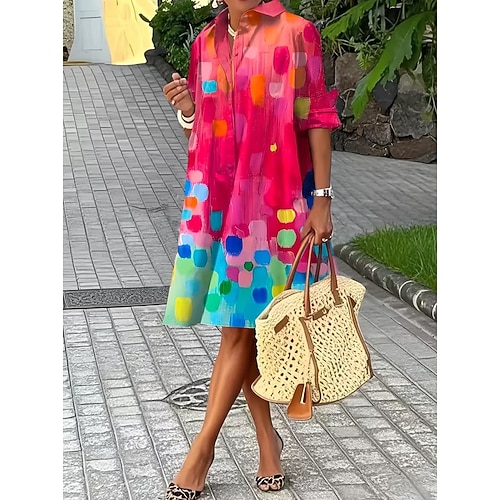 Per donna Abito Midi Vestito T-Shirt Vacanza Compleanno Casual Spiaggia Uscire Vestibilità comoda Grafico Astratto Manica Lunga Bavero Blu Rosa scuro Verde Estate Primavera
