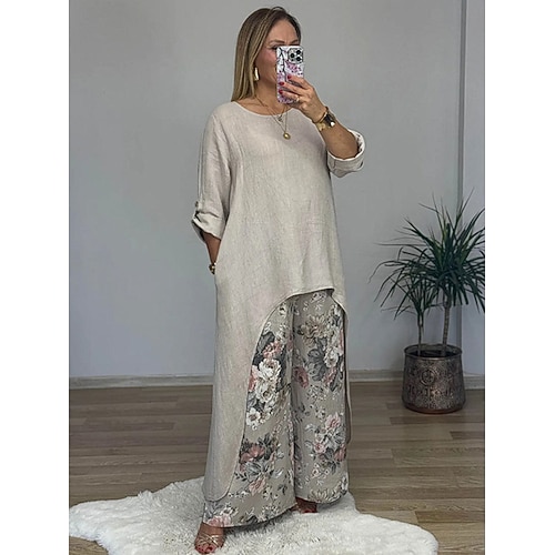 Per donna Taglia EU / US2 Pieces SetsMaglietta Pantaloni a Gamba Larga Manica Corta Girocollo Semplice Quotidiano Casuale Quotidiano Beige Estate Vestibilità comoda