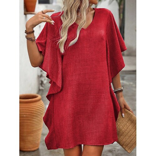 Per donna Mini Abito Abito a Tubino Casual Quotidiano Vestibilità comoda Semplice Mezza Manica Scollo a V Blu Nero Vino Rosso Estate Primavera Autunno