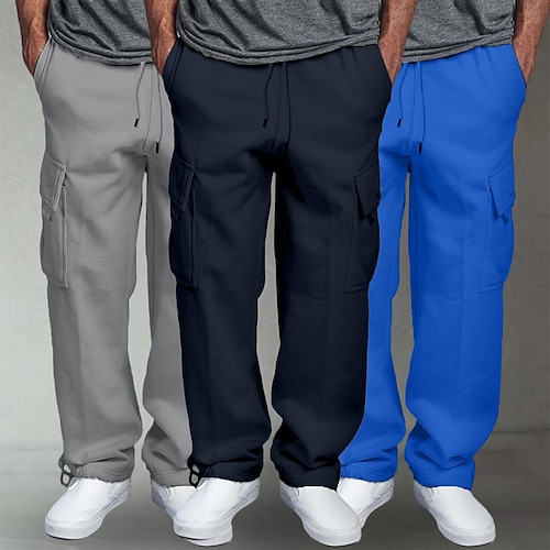 Per uomo Pantaloni da Tuta Cargo Pantaloni in Pile Joggers Pantaloni Pantaloni della tuta a gamba dritta Coulisse Elastico in vita Multi-tasche Tinta unica Antivento All'aperto Lunghezza intera